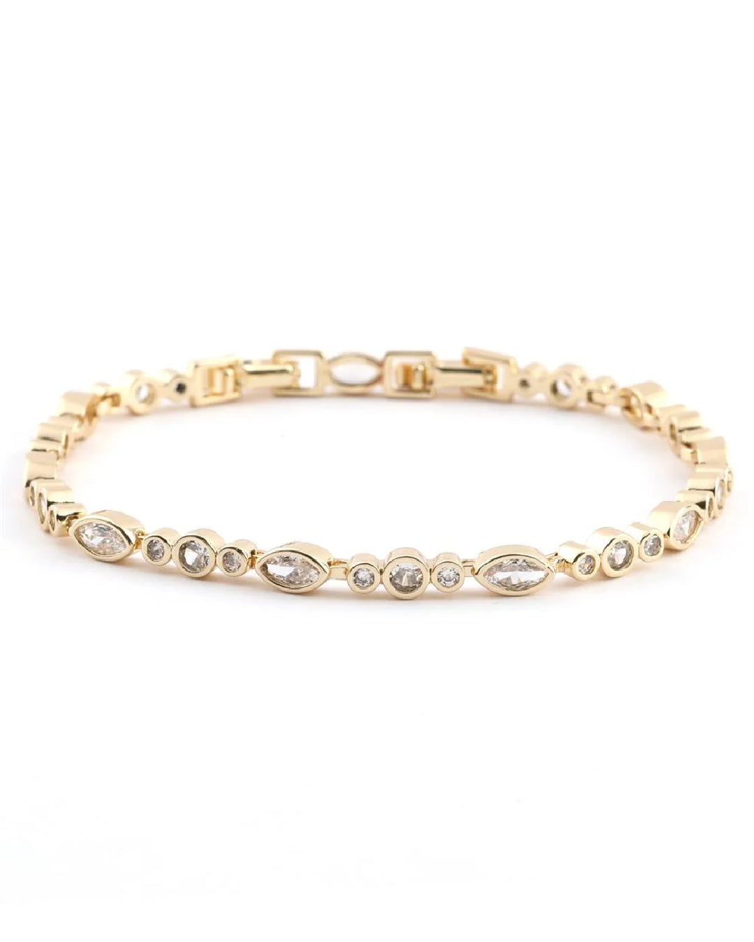 - Tasarım: Klasik su yolu tasarımına modern ve dinamik bir yorum getiren bu bileklik, yuvarlak kesim zirkon taşların ritmik bir düzenle sıralanmasından oluşur.