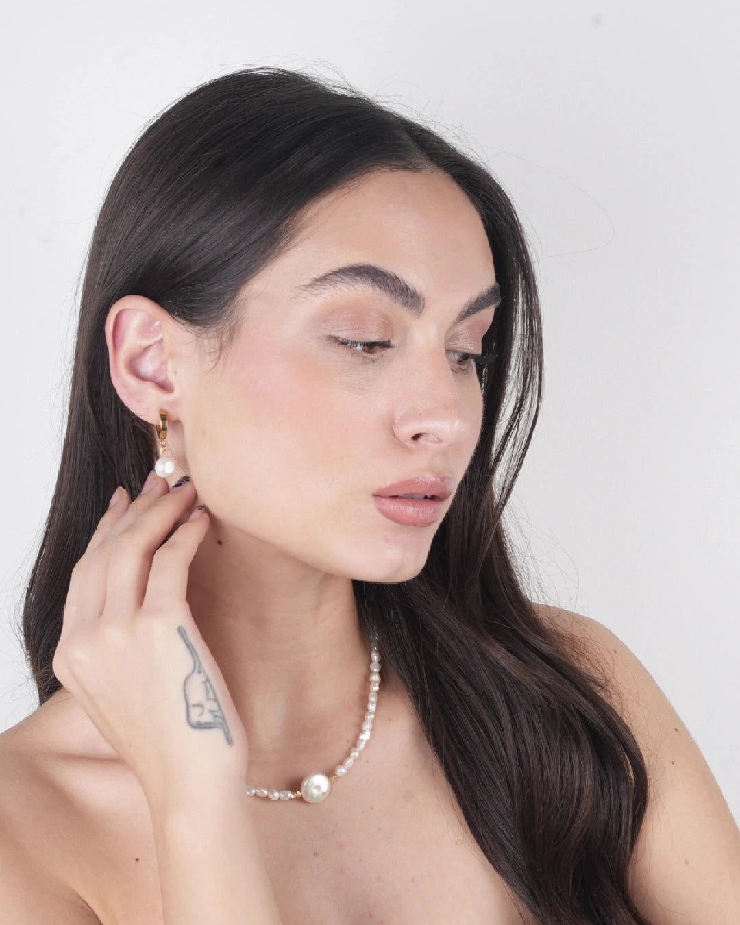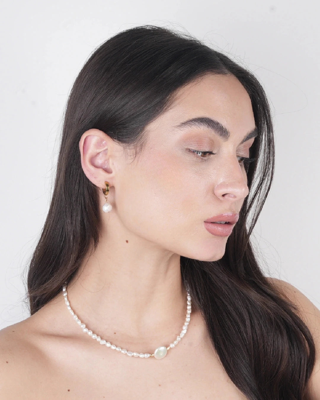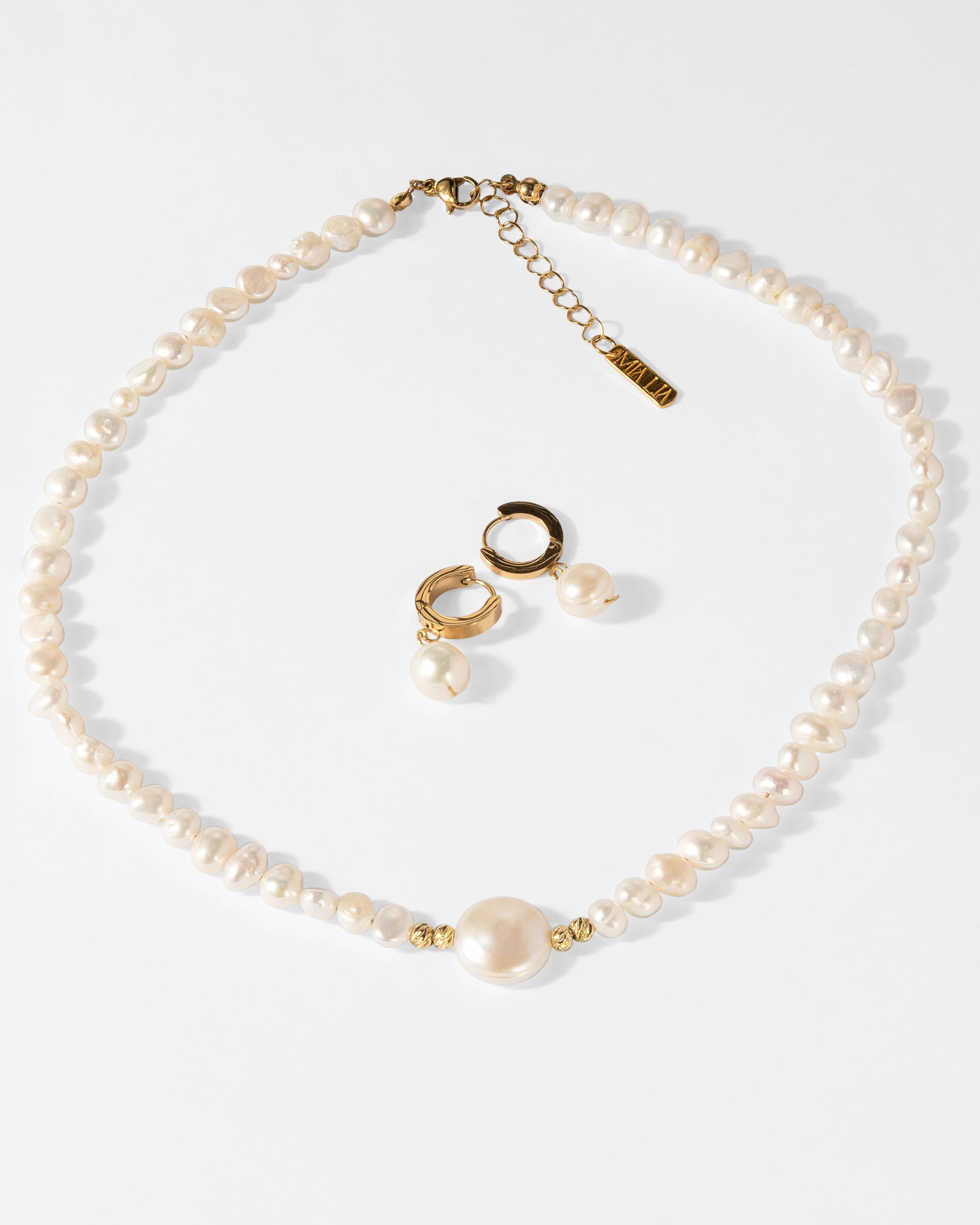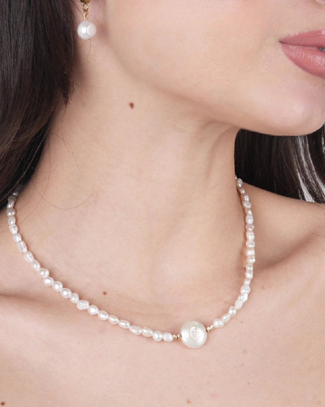 Aden - İnci Doğal Taş Kolye & Küpe
