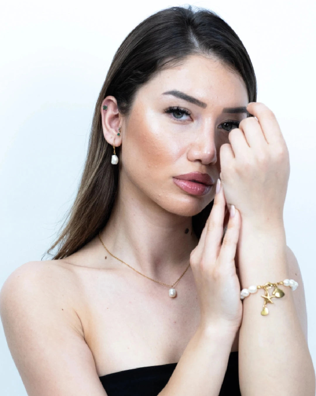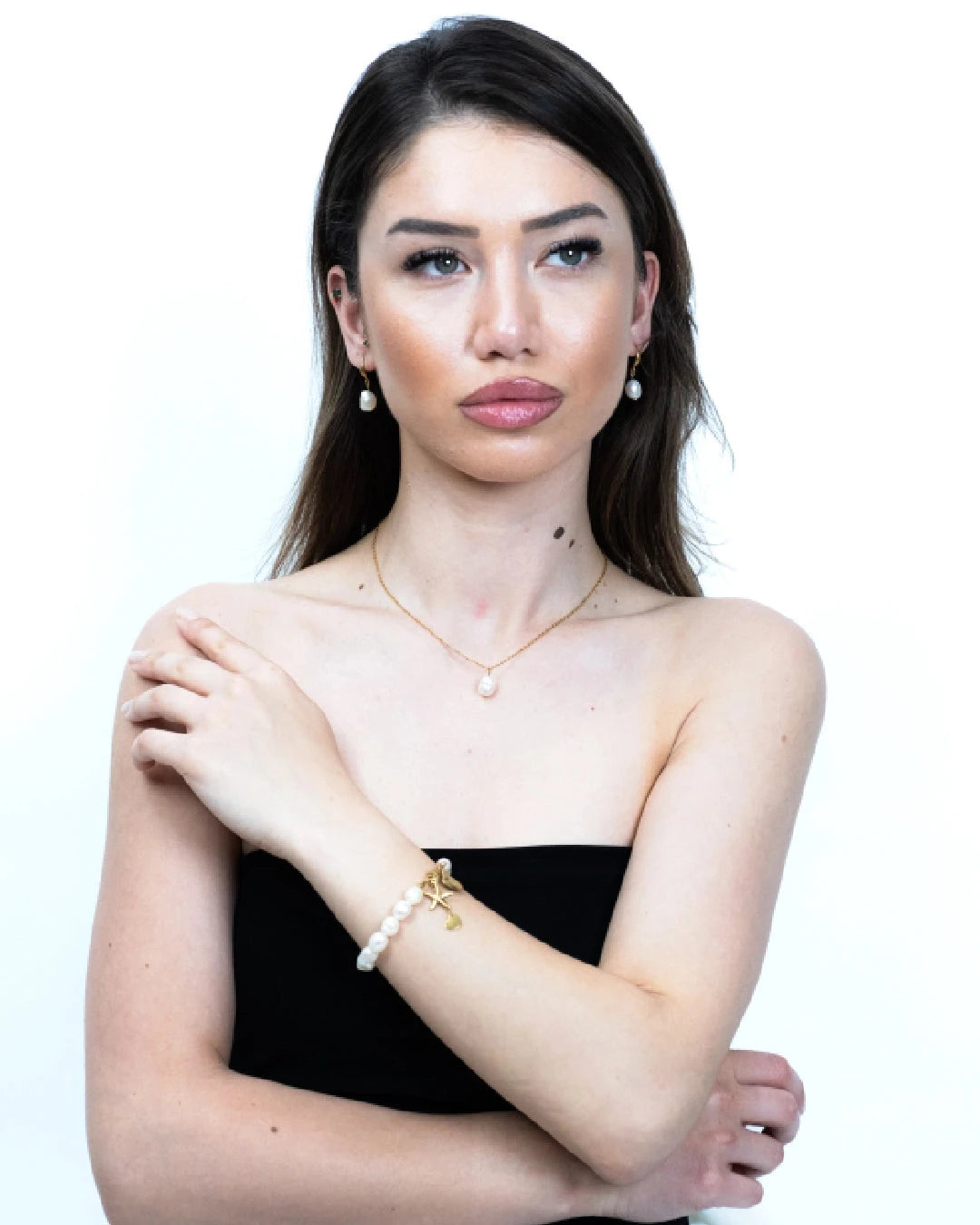 Elior - İnci Doğal Taş Kolye & Küpe & Bileklik