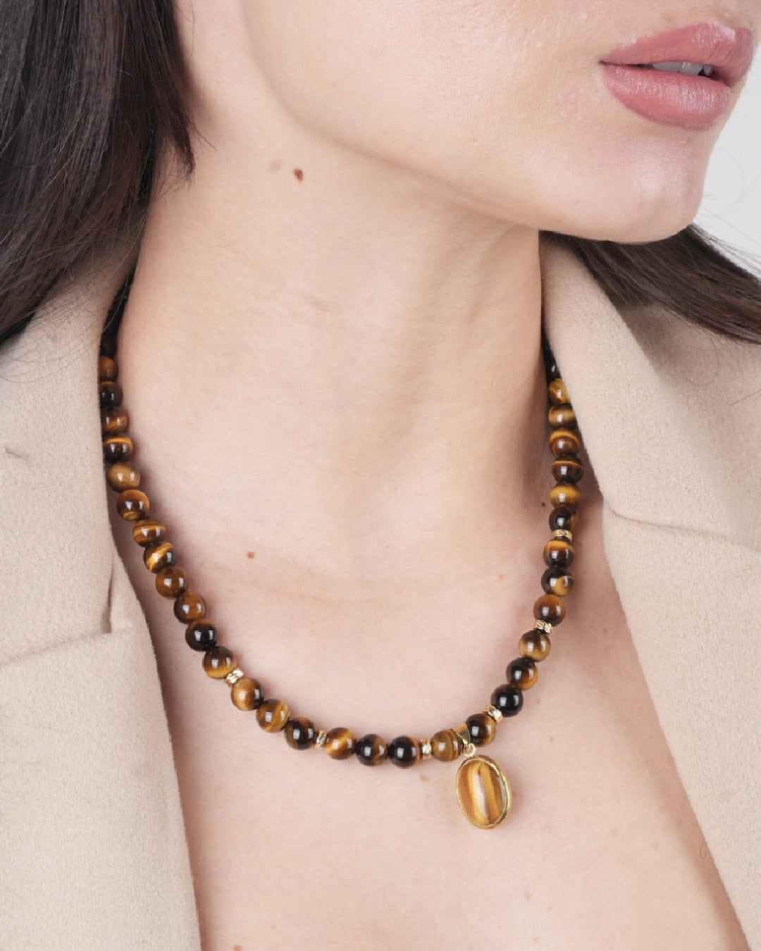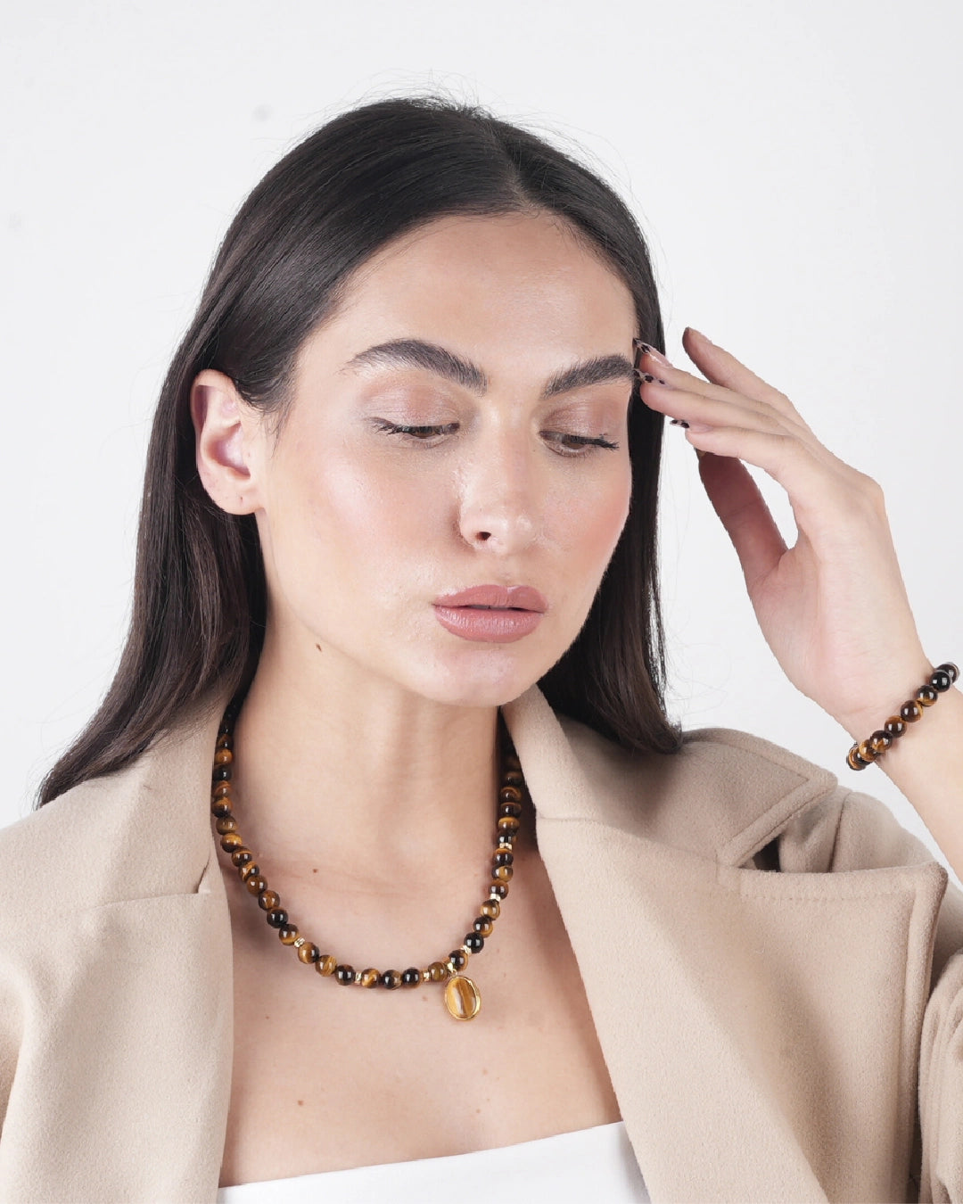 Tomiris - Kaplan Gözü Gümüş Doğal Taş Kolye & Bileklik