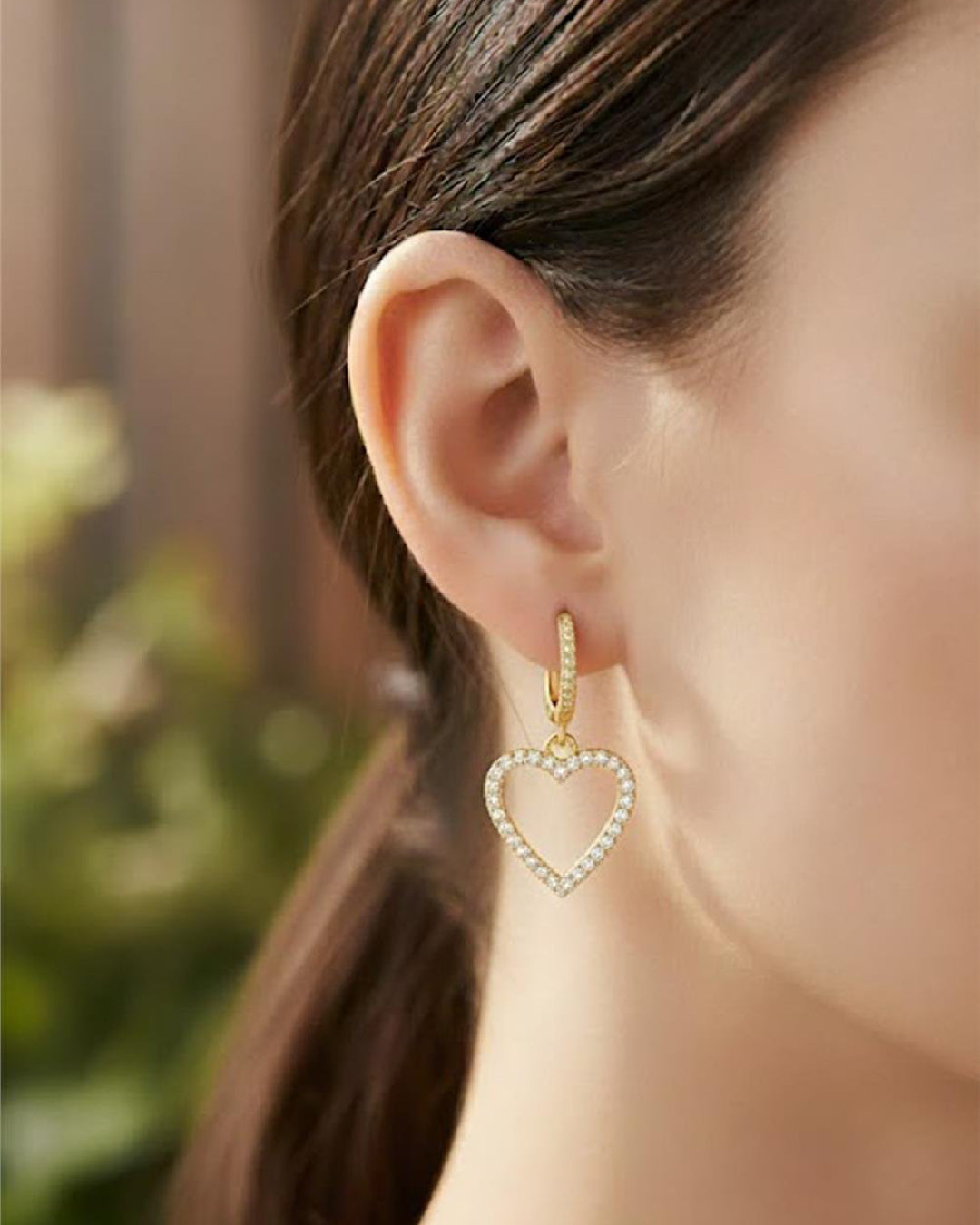 Zirkon Taşlı Kalp Sallantılı Halka Küpe