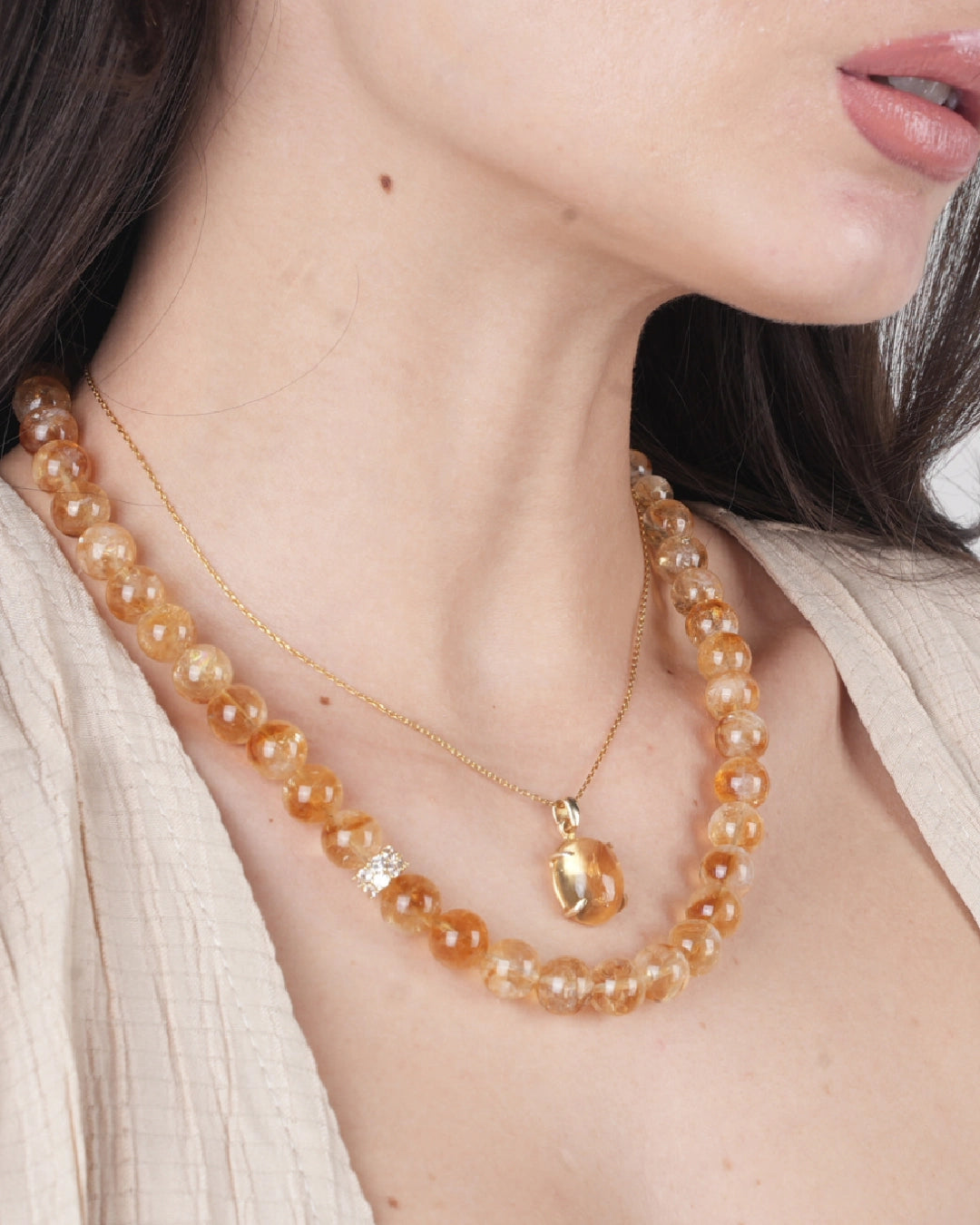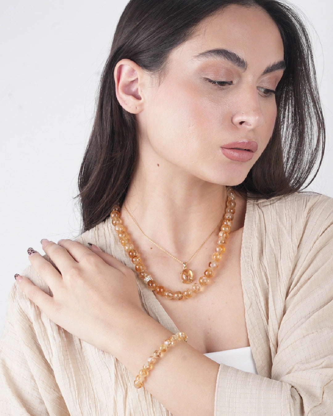 Zera - Sitrin Gümüş Doğal Taş Kolye & Bileklik