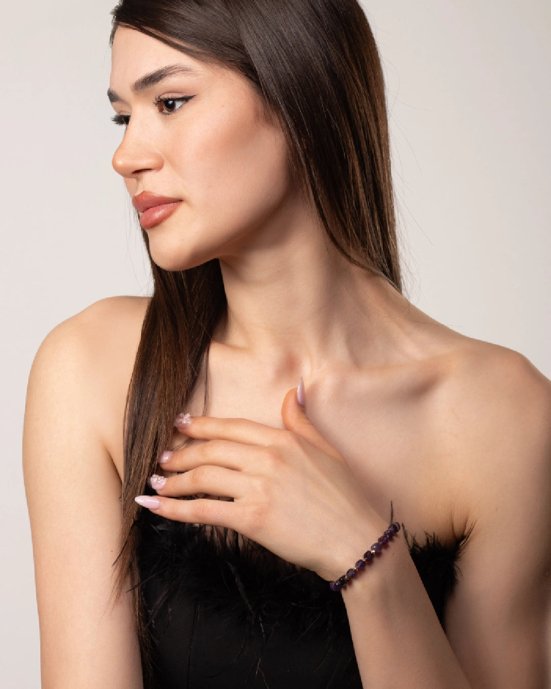 Ametist, morun farklı tonlarında parlayan, zarif ve güçlü bir taştır. Negatif enerjileri uzaklaştırdığına, ruhsal huzur sağladığına ve stresi azalttığına inanılır. Sakinleştirici etkisiyle, zihni dinlendirir ve içsel dengeyi destekler. Meditasyon yapanlar ve enerji çalışmalarıyla ilgilenenler tarafından sıkça tercih edilir.