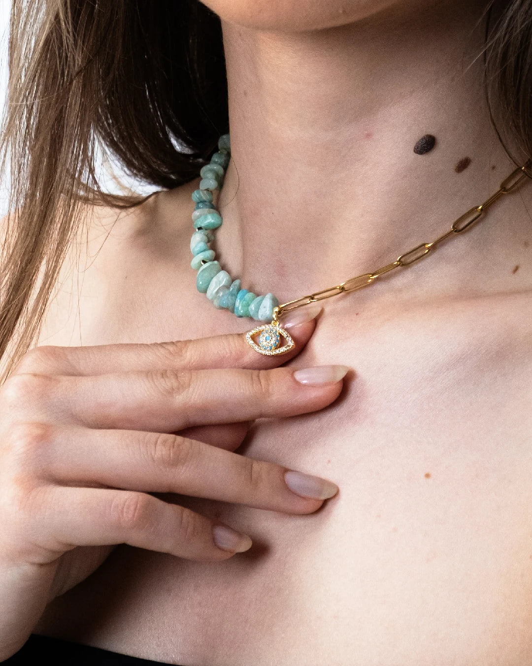 Amazonit, yeşilin ve mavinin yumuşak tonlarında parlayan, huzur veren bir taştır. Adını, Amazon Nehri’nden aldığı söylenir ve doğanın sakin enerjisini yansıtır. Bu taş, zihinsel ve duygusal dengeyi destekleyerek, kişinin kendini daha açık ve net ifade etmesine yardımcı olur. Özellikle iç huzuru sağlamak, kaygıyı azaltmak ve ruhsal rahatlama getirmek için tercih edilir.