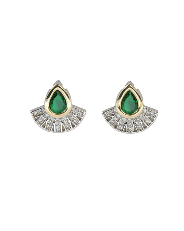 Zümrüt Yeşili Yelpaze Zirkon Küpe